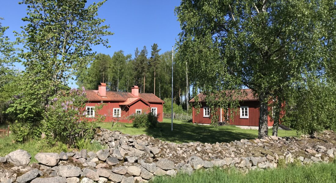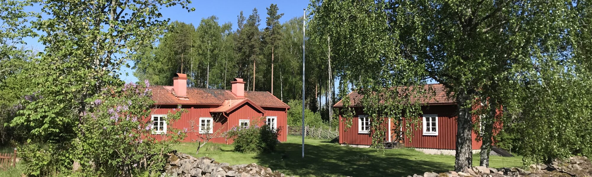 När solen skiner finns en stor härlig trädgård att sitta i. Vid sämre väder avnjuts fikan i brasans sken inomhus.