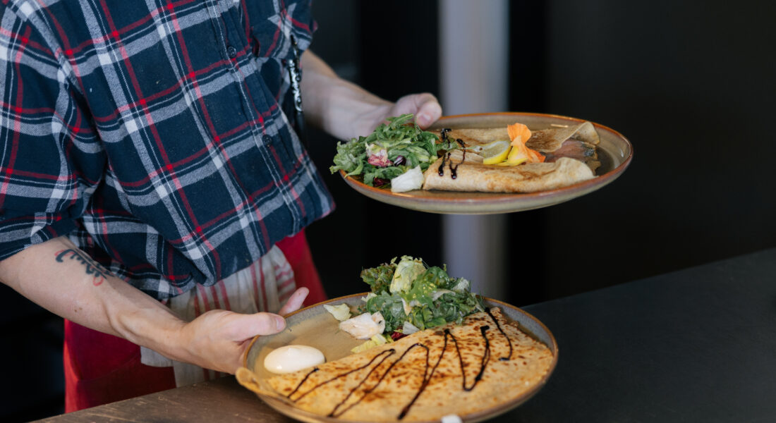 I den nybyggda glashyttan hos Orranäs Glasbruk hittar du ett café och creperie. Här kan du avnjuta en god fika eller lunch medan du tittar på de skickliga glasblåsarnas arbete.