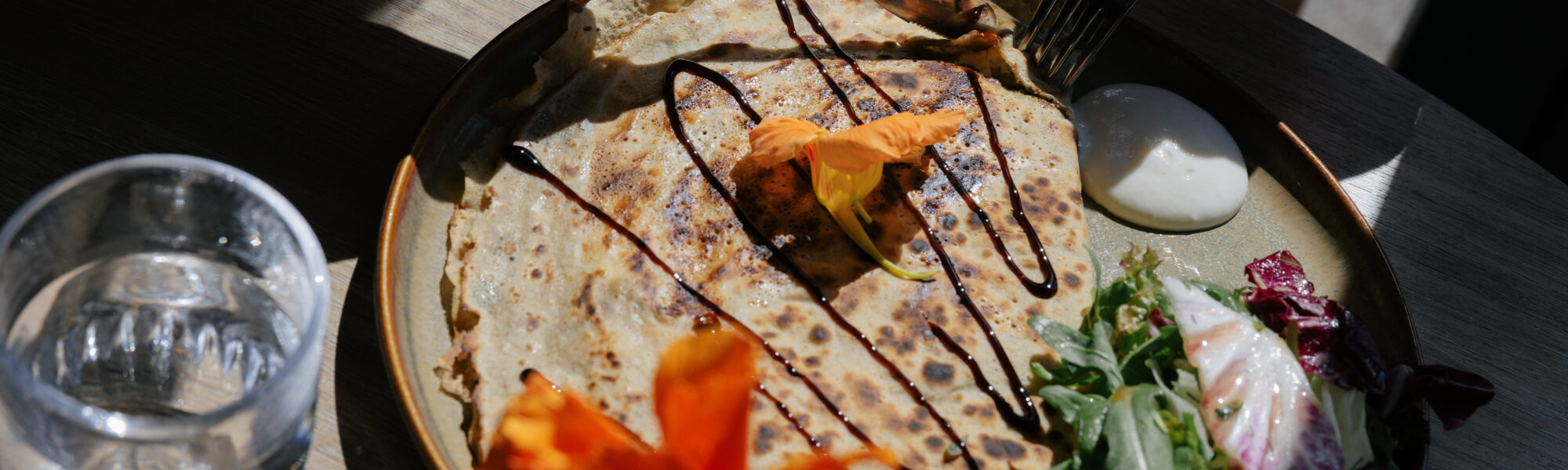 Café och Creperie med utsikt över de skickliga glashantverkarna hos Orranäs Glasbruk.
